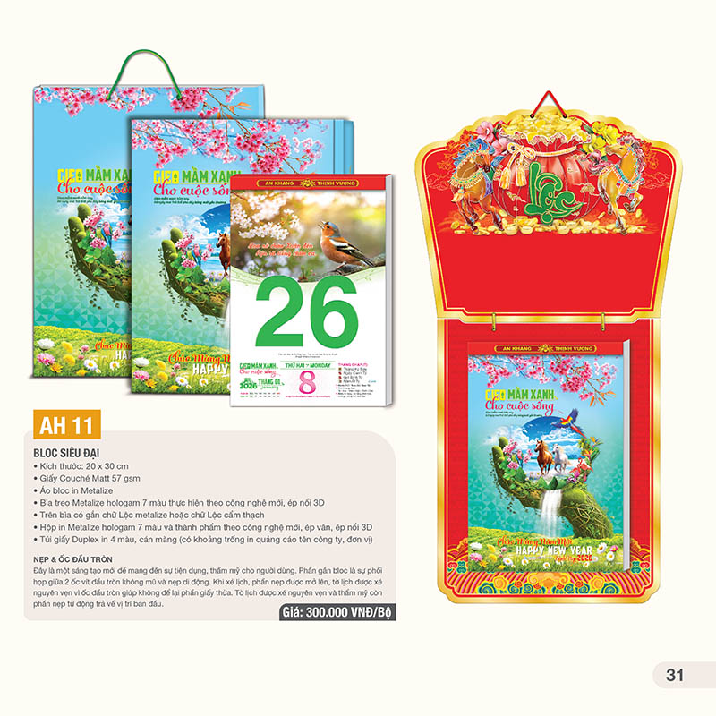 Lịch Bloc được thiết kế với nhiều chủ đề , kích thước khác nhau, vd( 20x30cm, 25x35cm, 30x40cm, 35×50, 38x53cm)……. Và nhiều loại bloc nhỏ ( 13x18cm, 14.5×20.5cm)….Dùng để gắn vào bìa Lịch, phù hợp với mọi nhu cầu chọn lựa của bạn.